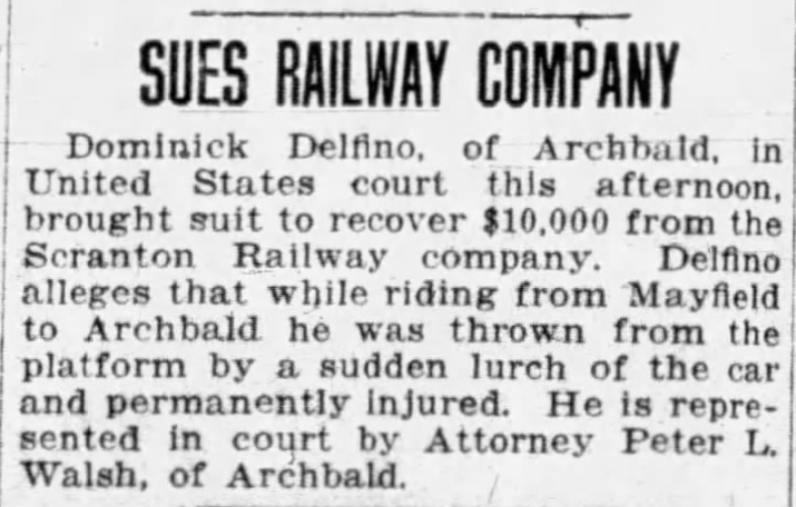 Years passed, and Mrs. Tunelli lost her husband to the flu in 1921. That’s when she moved from Archbald to Jermyn. After Delfino was captured, Mrs. Tunelli told the story to one of Dominick’s friends, who, in turn, brought the information to Delfino’s attorney, Mr. Edward Philbin. That’s when the affidavits were secured.