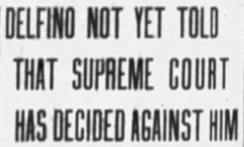 On January 7, 1918, the Supreme Court upheld the verdict, and the end is near for Delfino. His only hope now is a pardon. With the Court dismissing all challenges, it’s unlikely there’s room for a pardon. Oddly, days pass before Delfino is informed of the Court’s decision. Imagine that.