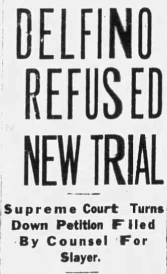 Delfino was sitting in jail, waiting for his attorneys to work their magic. In late December, news surfaced that he was seriously ill. He was said to have incurred several epileptic fits throughout the day. Both the Sheriff and the Warden confirmed his status. The Sheriff was willing to bet that “he will never live to be seated in the electric chair.” They added that he has taken the conviction very hard and maintains his innocence.