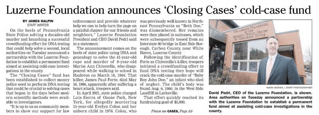 Additionally, consider a donation to the Luzerne Fund to help them close more cold cases and bring those responsible to justice.