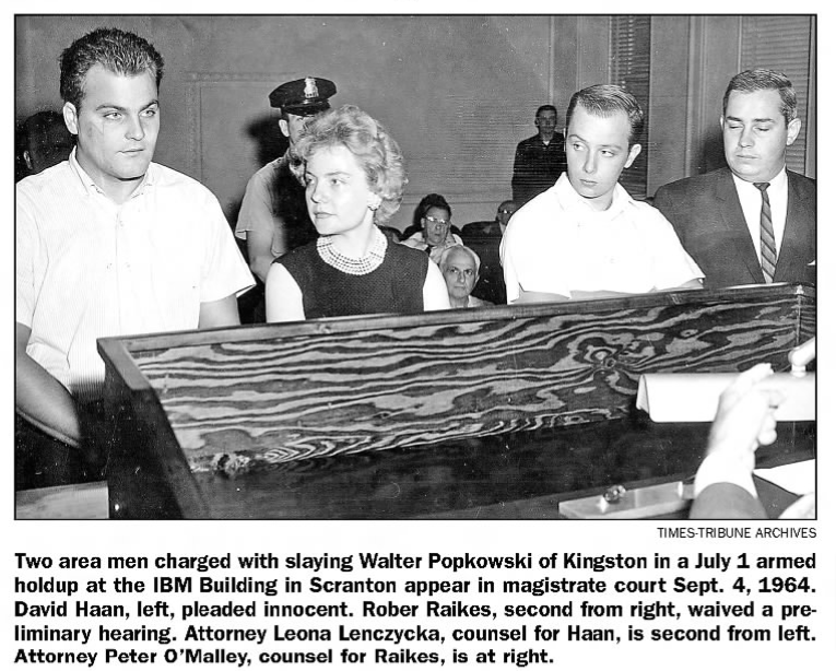 The pair appear together at the preliminary hearing. Both are cleaned up and well-presented. Haan, represented by Lenczycka, and Raikes by Peter O’Malley. Attorney O’Malley was standing in for his father, Carlon, former long-time Lackawanna County District Attorney who was out of the country at the time of the hearing.