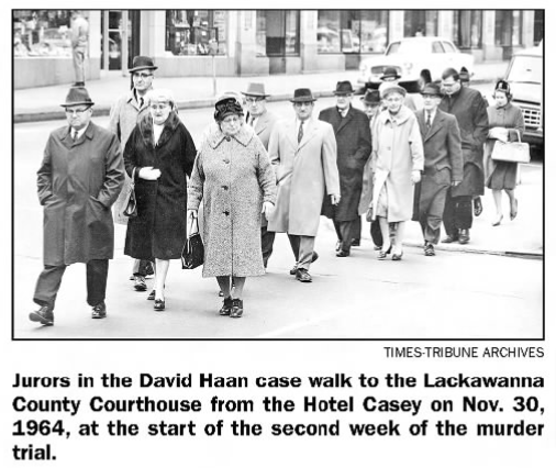 Judge Robinson makes a special request that the jurors be as comfortable as possible and that they have an “especially fine Thanksgiving Day dinner.” He tells the jurors that he realizes the inconvenience and burden this has placed on them and their families. He adds that they should “reflect on the blessing of this country where persons, regardless of the crime committed, can receive a fair trial and every man is presumed innocent until proven guilty.” As a special treat, the jurors were taken on a bus ride to Lake Wallenpaupack to help pass the time.