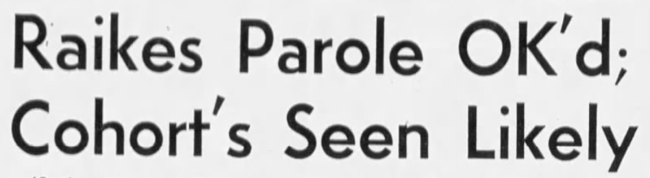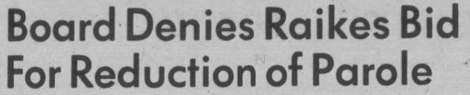 And DA Paul Mazzoni also petitions the Parole Board to uphold the life sentences for the two men. To no avail, Raikes was granted parole in January 1975 after just over ten years in prison.