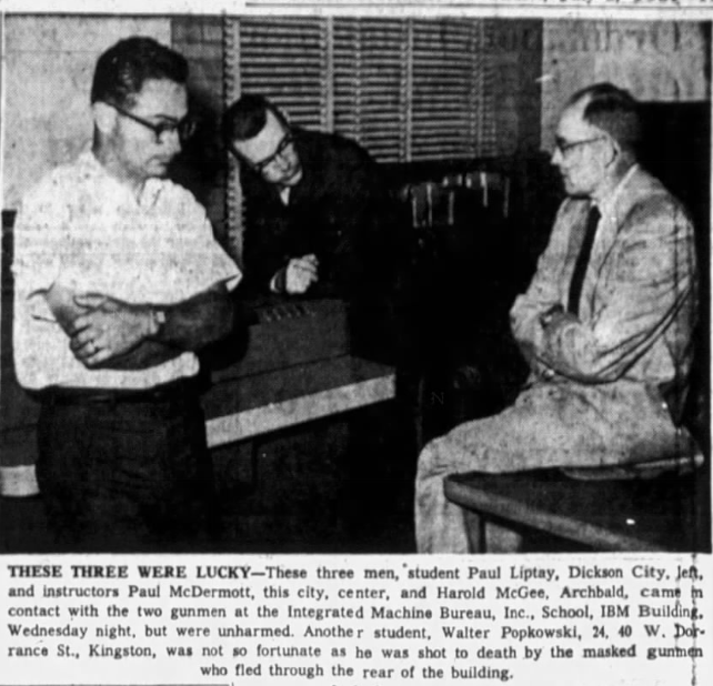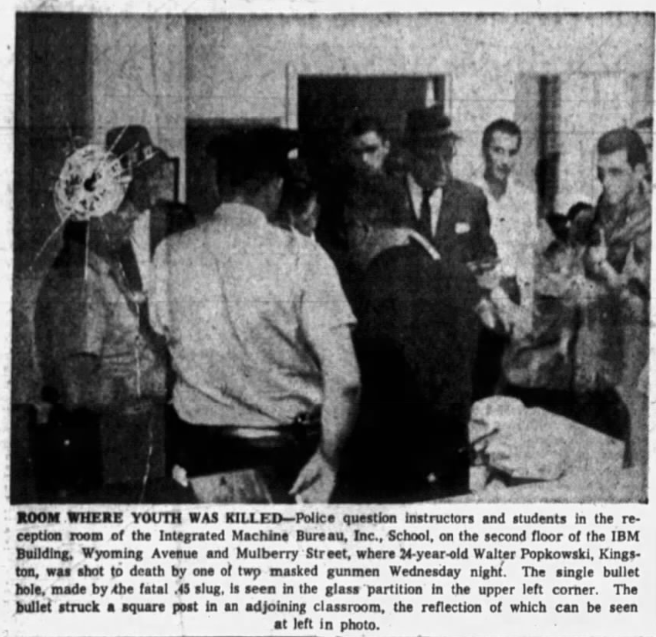 Just seven months after opening the new building, tragedy struck. On the evening of July 1, 1964, US Navy veteran Walter Popkowski, 24, was getting ready to attend his final 6:30 p.m. class at IMB on the second floor of the building in downtown Scranton. This was the last class of his 11-week program, after which he and his classmates were set to graduate.