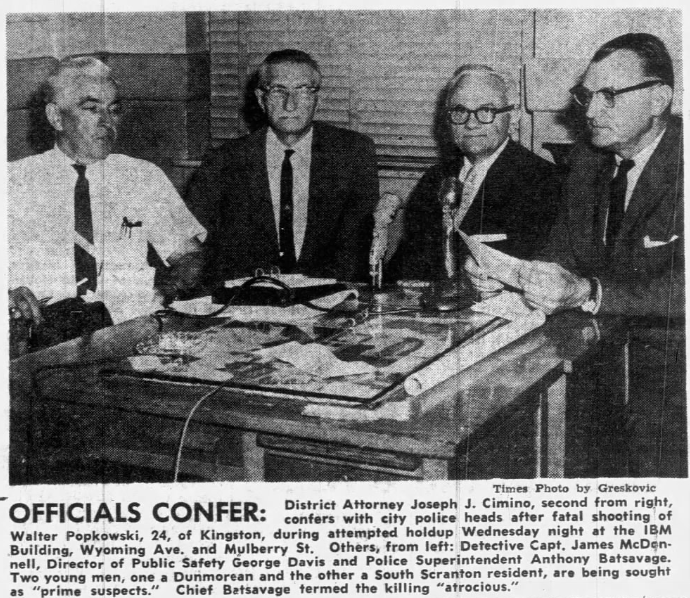 DA Cimino openly applauded the efforts and cooperation of the Wichita Police Department in solving this case. Their professionalism, “splendid efforts,” and “thorough investigation” were lauded by Cimino – so much so that he must have taken some heat for thanking them but not the Scranton Police. Two days later, Cimino publically thanked the Scranton team for their role in solving the crime and called out several men who were involved. And then, a couple more days later, thanked the Dunmore Police.