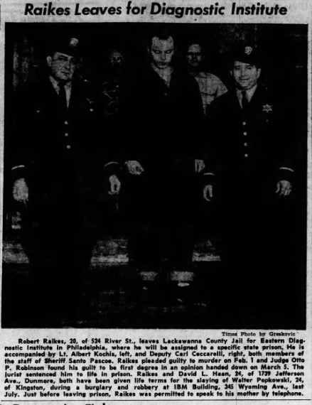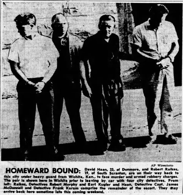 Haan and Raikes waived extradition, and Scranton Police were sent to Wichita to return the two men to the city. Detective Captain James McDonnell, along with Detectives Earl Kugler, Frank Karam, and Robert Murphy, were scheduled to drive to Wichita to pick up the prisoners and return them to face trial.