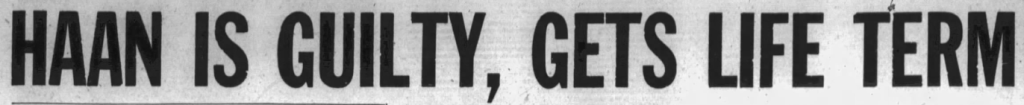 After just over three hours of deliberations, the verdict was in. At 6:34p.m. on December 4, 1964, five months after the murder – and only three months after their capture, David Lee Haan is guilty of murder in the first degree.