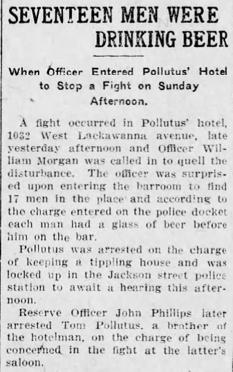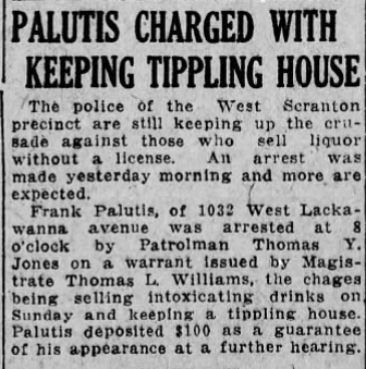 In 1914, Palutis was fined yet again for keeping a “tippling house.” At the time, the business was listed as a hotel.