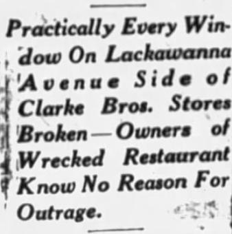 The blast shattered sixty windows of the Clark Brothers’ store across Lackawanna Ave and blew out others as far away as Main Ave.