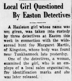Just two weeks after Margaret’s disappearance, on the morning of December 30, 1938, Kingston Police went on a high-speed chase in pursuit of a man who was alleged to have tried to pick up two young girls in his car. With everyone in town on high alert, the girls contacted Wilkes-Barre police after they were solicited by a man as they waited for a streetcar in Edwardsville.