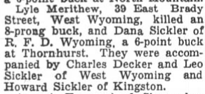It all began with Edward Rezykowski, 16, who lived on a farm in Eaton Township. Eaton is the area just west of the Susquehanna River, south of Tunkhannock. While out walking on Sunday, December 18, Edward saw large muskrats near a footbridge that crossed over the Keelersburg Creek in North Moreland Township. The area was just south and adjacent to Eaton Township. He told his brother Anthony, 19, about the varmints so he could go hunt them.