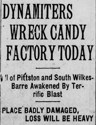 But the violence continued – and escalated. In the early morning of October 4, 1927, an explosion destroyed the Vito Bianco’s Wilkes-Barre Candy Maid Company in Pittston. Vito owned the business with his brother Joseph.