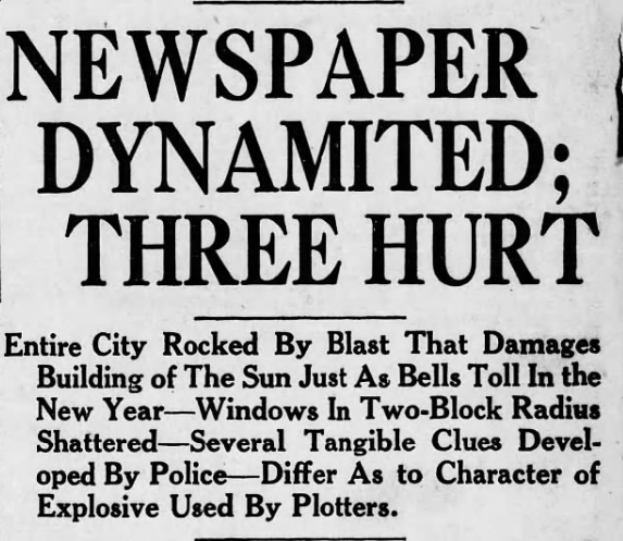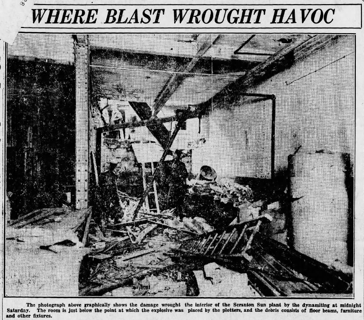 A couple of months later, as the city was ringing in the New Year on January 1, 1928, a blast ripped through the plant of The Scranton Sun The local newspaper was located at 314-316 Adams Ave. Fortunately, no one was severely injured.
