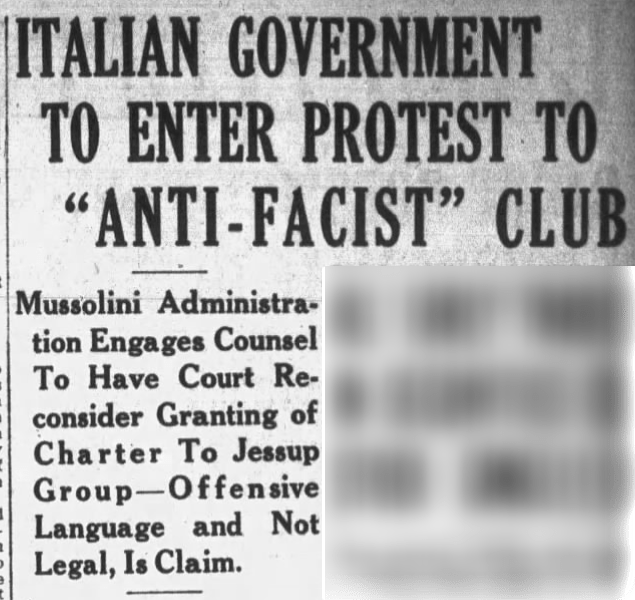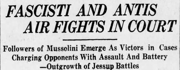 By the mid-1920s, the Italian-American Anti-Fascisti Association and the Fascisti League of North America were born and both had chapters nationwide – including a Jessup chapter of the Anti-Fascist Association.