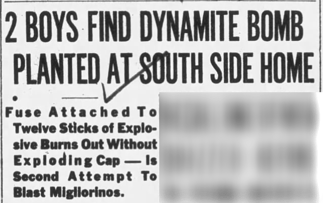 The final attempted bombing was in December 1928. The Migliorino home was once again targeted – even after Charles passed away. His widow claimed she knew of no one who would want to harm her or her family. I will say, this one is perplexing. Could there be more to the story?