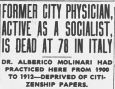 Coincidentally, Umberto’s brother, Alberico Molinari published the Socialist Newspaper, Ascesa, in Scranton from 1905-1911. He too was a known anti-fascist, getting arrested in Chicago as part of a labor strike.