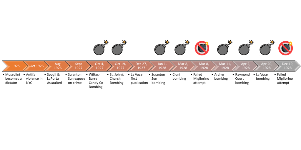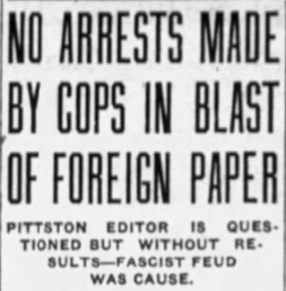 The La Voce bombing was likely the work of Antifa and/or Il Minatore. The rival newspaper despised their views and was probably even more irked when they moved in next door and started their business of spewing pro-Mussolini rhetoric. Again, they didn’t care if people were injured.