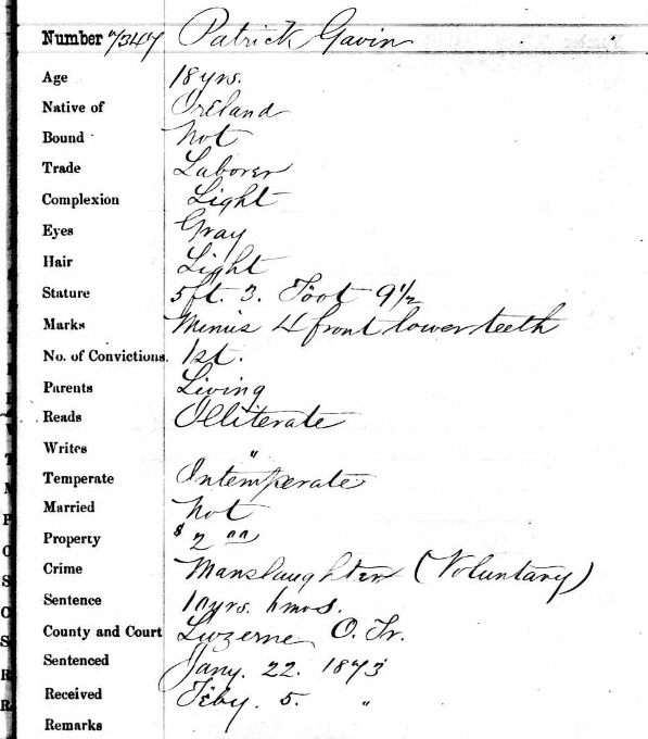 The investigation revealed that he and his friend, Patrick Gavin, spent the night drinking and later got into a fight. Gavin, who lived in the Notch with his sister, Mrs. John Jennings, was arrested and eventually tried for the crime. He testified that he became enraged after drinking “bad whiskey” and didn’t recall how or why he committed the crime. He was sentenced to a $500 fine and 10-1/2 years in Eastern State Penitentiary.