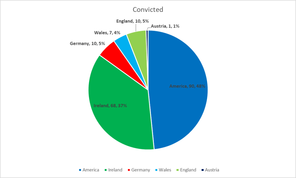 Of those convicted throughout the year, the majority were considered American, but the Irish were a close second.