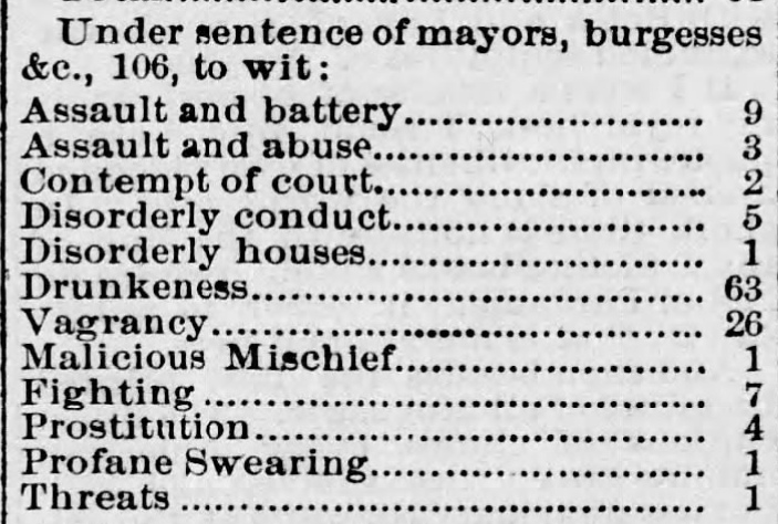 Those who were sentenced by the mayor or burgess were largely due to drunkenness and vagrancy.
