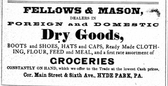 Joseph T Fellows ran a grocery and dry goods store at the corner of what is now Luzerne Street and Main Avenue. This was likely the first “Fellows’ Corners” in Hyde Park.
