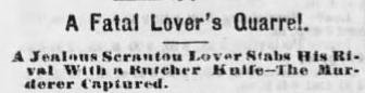 The early days of Scranton had seen more than its share of violence. A fight over a young lady turned deadly in the Boone Hill section in 1875.